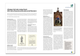 Neben der Amtskirche bestanden im Katholizismus seit dem Mittelalter stets auch genossenschaftliche Zusammenschlüsse von Gläubigen. Zu den frühen religiösen Laien-Vereinigungen in Liechtenstein zählt die 1626 gegründete Rosenkranzbruderschaft in Bendern. In der Dezember-Ausgabe der Gemeindeinformationen gamprinbendern zeichnet Fabian Frommelt die Entwicklung der Bruderschaft nach.