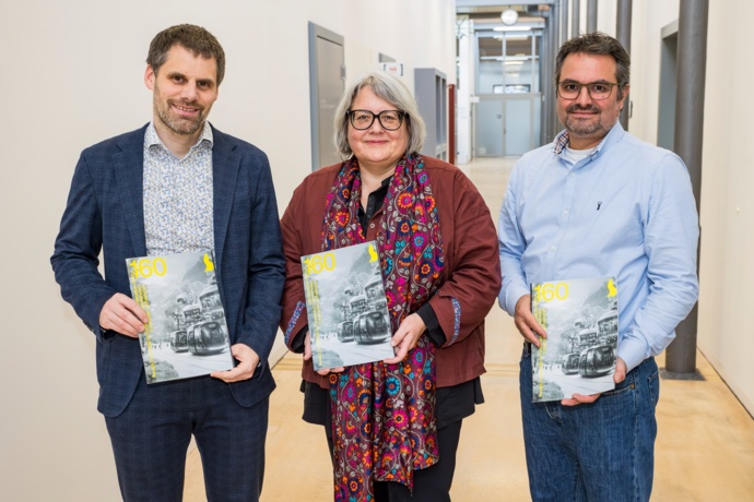 Christian Frommelt, Barbara Gant and Thomas Meier (from left) are delighted with the publication of the latest issue of the jointly published magazine. (Photo: Paul Trummer)