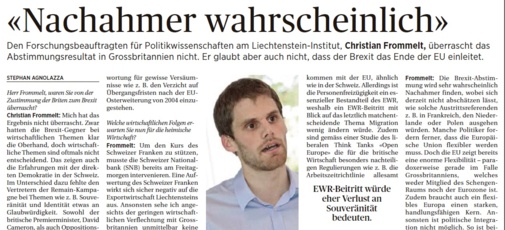 Welche Optionen hat Grossbritannien nach seinem Austritt aus der Europäischen Union (EU)? Wird es sogar der EFTA- oder dem EWR beitreten und damit ein Partner für Liechtenstein? Christian Frommelt, Politikwissenschaftler am Liechtenstein-Institut, gibt Auskunft. Europäische Integration bildet einen Schwerpunkt seiner Forschungstätigkeit.