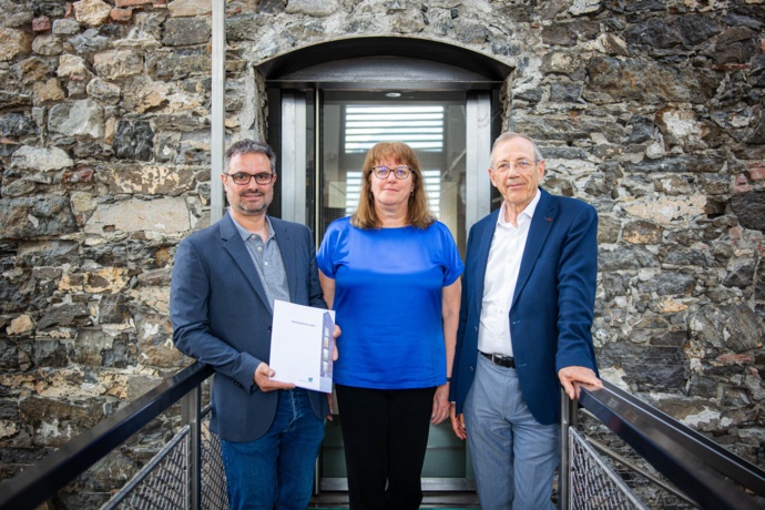 Looking back on an eventful 2023: (from left to right) Thomas Meier, Director, Sieglinde Gstöhl, Chairwoman of the Scientific Council, and Guido Meier, President of the Liechtenstein Institute.