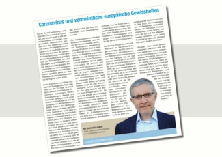 Coronavirus und vermeintliche europäische Gewissheiten 6 Apr 2020 - Gastkommentar Gastkommentar von Georges Baur in der April-Ausgabe der Lie-Zeit über die Auswirkungen der Corona-Krise auf die Europapolitik. Publications on this Topic Baur, Georges (2020): Coronavirus und vermeintliche europäische Gewissheiten. Gastkommentar. Lie-Zeit Nr. 84, April 2020. Current Projects on this Topic Guest Commentaries Lie-Zeit » zur Startseite » zum Newsarchiv