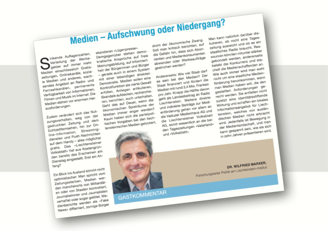 Marxer, Wilfried (2018): Medien - Aufschwung oder Niedergang? Gastkommentar. Lie-Zeit Nr. 65, Mai 2018.