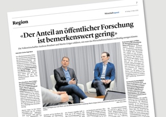 «Der Anteil an öffentlicher Forschung ist bemerkenswert gering». Interview by Corina Vogt-Beck with Andreas Brunhart and Martin Geiger. Wirtschaft Regional, 21 March 2025