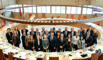 Bild: Die Teilnehmerinnen und Teilnehmer des Treffens des Gemeinsamen Parlamentarischen Ausschusses im Landtagssaal in Vaduz. (Foto: www.efta.int)