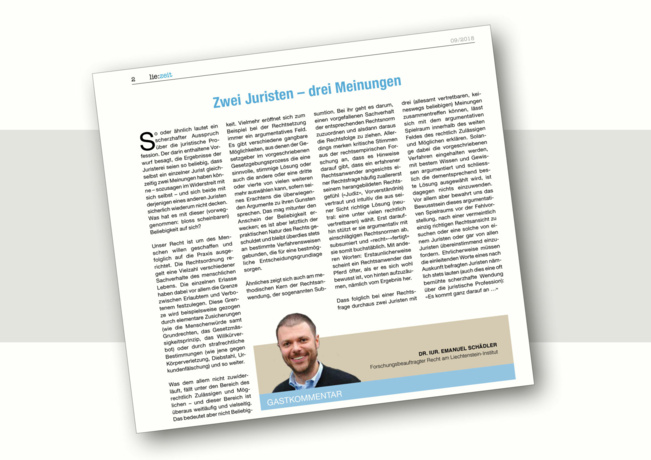 Zwei Juristen – drei Meinungen 18 Sept 2018 - Gastkommentar Gastkommentar von Emanuel Schädler in der Lie-Zeit Nr. 68, September 2018. Publications on this Topic Schädler, Emanuel (2018): Zwei Juristen - drei Meinungen. Gastkommentar. Lie-Zeit Nr. 68, September 2018. » zur Startseite » zum Newsarchiv
