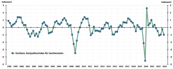 Der allmähliche Aufschwung der liechtensteinischen Konjunktur ab dem 4. Quartal 2022 wurde im 2. Quartal 2023 abrupt unterbrochen. Hauptursache für die wirtschaftliche Abkühlung war die schwächelnde internationale Nachfrage, weshalb bei Liechtensteins Güterexporten sogar ein deutlicher Rückgang gegenüber dem 1. Quartal verzeichnet wurde.