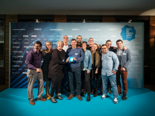 Im Bild: Mitarbeitende von Liechtenstein Marketing, der Firma Bitforge und des Liechtenstein-Instituts anlässlich der Preisverleihung am 6. November 2019 in Zürich (bestofswissapps.ch).