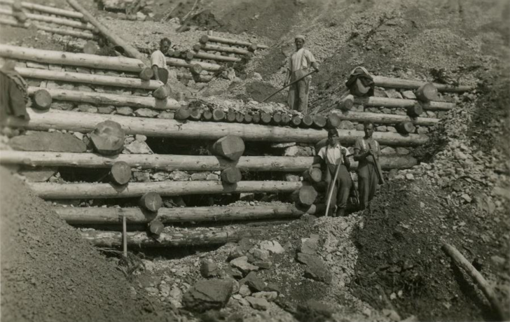 Zur Abbildung: Bauarbeiten bei der Alpila-Krüppel-Rüfe in Schaan, 1937 (LI LA B 133/012/009, Foto: Landesarchiv / Unbekannt).Bauarbeiten bei der Alpila-Krüppel-Rüfe in Schaan, 1937 (LI LA B 133/012/009, Foto: Landesarchiv / Unbekannt).