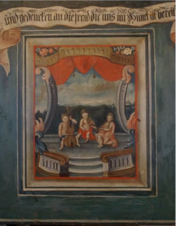 Die Abbildung zeigt ein Detail des aus dem frühen 18. Jahrhundert stammenden Orgel-Positivs der Johanneskirche. Der gesamte Schriftzug lautet: «Wenn die Orgel lieblich klinget, soll das Hertze fröhlich singen und gedencken an die Freud, die uns im Himel ist bereit‘.» (Bild: Evangelisch-lutherische Kirche im Fürstentum Liechtenstein).