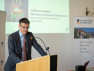 1982 schuf die liechtensteinische Regierung den „Liechtenstein-Preis“ für die wissenschaftliche Forschung an der Universität Innsbruck. Bei der diesjährigen Preisverleihung in der Innsbrucker Claudiana hielt Fabian Frommelt aus aktuellem Anlass einen Festvortrag zum Thema „300 Jahre Fürstentum Liechtenstein – Kontinuität und Wandel“.