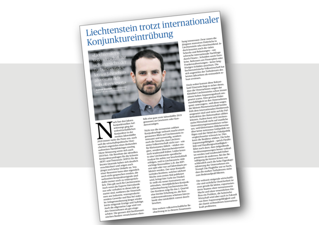 Liechtenstein trotzt internationaler Konjunktureintrübung 02.09.2019 - Gastkommentar Gastkommentar von Andreas Brunhart im Wirtschaft Regional vom 31. August 2019. Publikationen zu diesem Thema Brunhart, Andreas (2019): Liechtenstein trotzt internationaler Konjunktureintrübung. Gastkommentar. Wirtschaft Regional, 31. August 2019. » zur Startseite » zum Newsarchiv