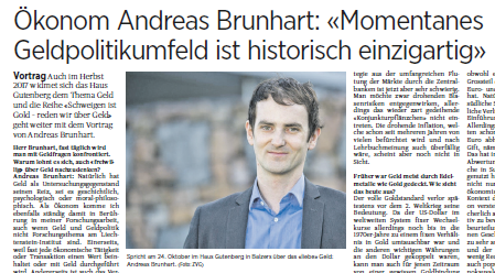 Erschienen im Rahmen des Vortrages „Das ‚liebe‘ Geld und wie es funktioniert" von Andreas Brunhart am 24. Oktober 2017 im Haus Gutenberg in Balzers.