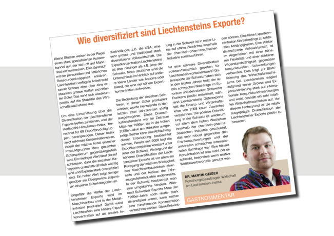 Wie diversifiziert sind Liechtensteins Exporte? 18.11.2019 - Neue Publikation Gastkommentar von Martin Geiger in der Lie-Zeit-Ausgabe vom November 2019. Publikationen zu diesem Thema Geiger, Martin (2019): Wie diversifiziert sind Liechtensteins Exporte? Gastkommentar. Lie-Zeit Nr. 80, November 2019. Abgeschlossene Projekte zu diesem Thema Effekte von Wechselkursschwankungen auf Liechtensteins Wirtschaft » zur Startseite » zum Newsarchiv