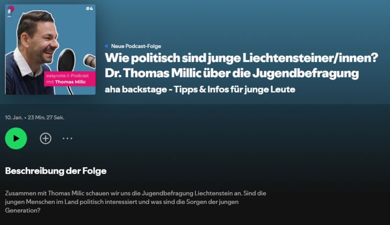 Der Jugendrat Liechtenstein hat sich im Wahljahr 2025 zum Ziel gesetzt, junge Wählerinnen und Wähler auf die kommenden Landtagswahlen vorzubereiten. Dazu gibt es eine Podcast-Reihe. Interviewt wurde auch Thomas Milic vom Liechtenstein-Institut.
